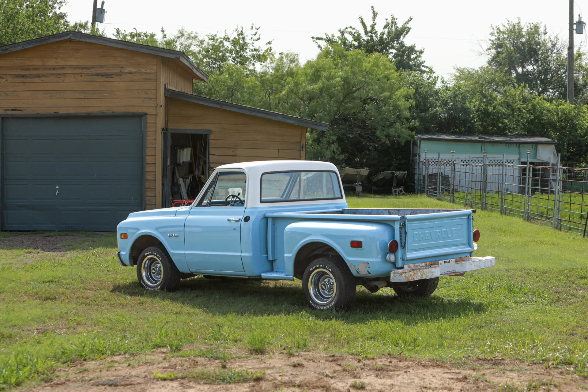 Earl gets his name from the great Earl Campbell—because once you see his light blue and white Houston Oilers-inspired paint and those stepside fenders (think “tree-trunk legs”), there’s really no other choice. We picked him up at Mecum Dallas in 2024—one of the last trucks rolling through on Friday. The crowd had thinned out. Bidding stalled.